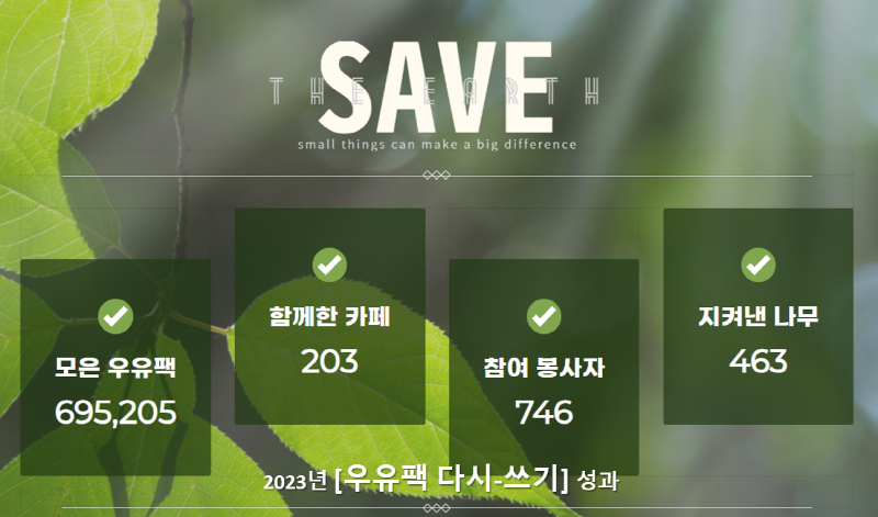 우유팩 다시-쓰기, 그리고 커피박 다시-쓰기 사업의 확장과 더불어 2024년에는 본격적인 교육캠페인(종이팩 해리 체험 교육, 어쓰런(등산 플로깅)) 을 전개해나갈 계획입니다. 한 해 동안 보내주신 지.소.행에 대한 성원에 감사드립니다. 🙏