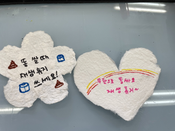 종이팩 재생종이 만들기 체험에서 "무한으로 💩싸요. 재생 휴지~"라는 희대의 명언을 남긴 조종중학교 학생들은 청소년답게 왁자지껄하고 시끌벅적하게 교육에 참여했지만 또 청소년답게 어른들은 생각해낼 수 없는 창의적인 메세지들을 남겼습니다. 지.소.행의 자원순환 교육이 학교라는 무대에서 계속해서 성장하고 있습니다. 😉