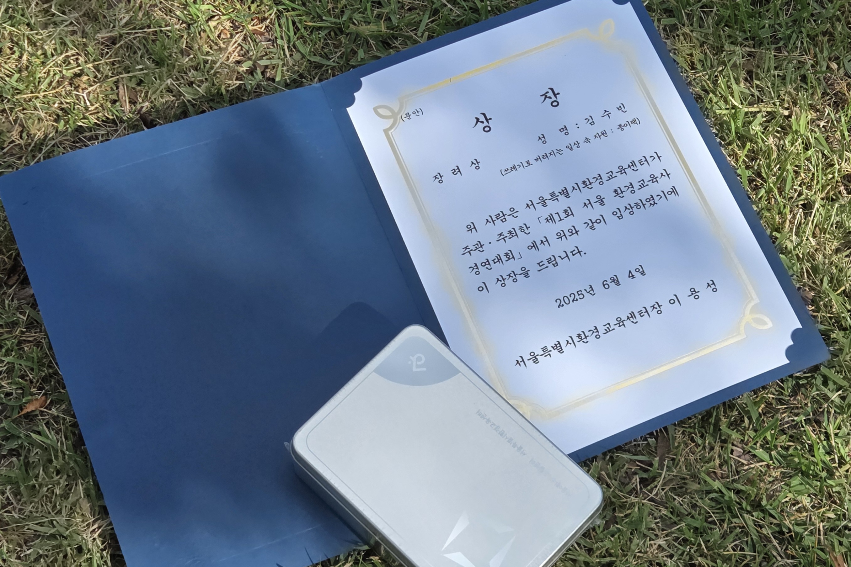 2025 서울 환경교육주간 행사에서 열린 '제1회 서울 환경교육사 경연대회'에 참가하여 장려상을 수상했습니다! '쓰레기로 버려지는 일상 속 자원'이라는 주제로 생활 폐기물의 심각성과 자원순환의 중요성을 알리는 프로그램을 선보였는데요. 이번 대회를 통해 지소행의 교육 프로그램을 시연하고 피드백 받는 값진 시간을 가질 수 있었고, 이를 바탕으로 더욱 완성도 높은 교육 프로그램을 만들어나갈 예정입니다.