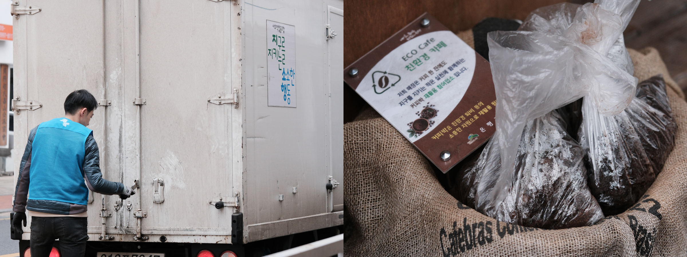 국내 환경단체 최초, 폐기물 수집·운반 허가증과 탑차를 보유한 지소행! 수도권과 제주도에서 열심히 커피박을 수거하고 있어요.